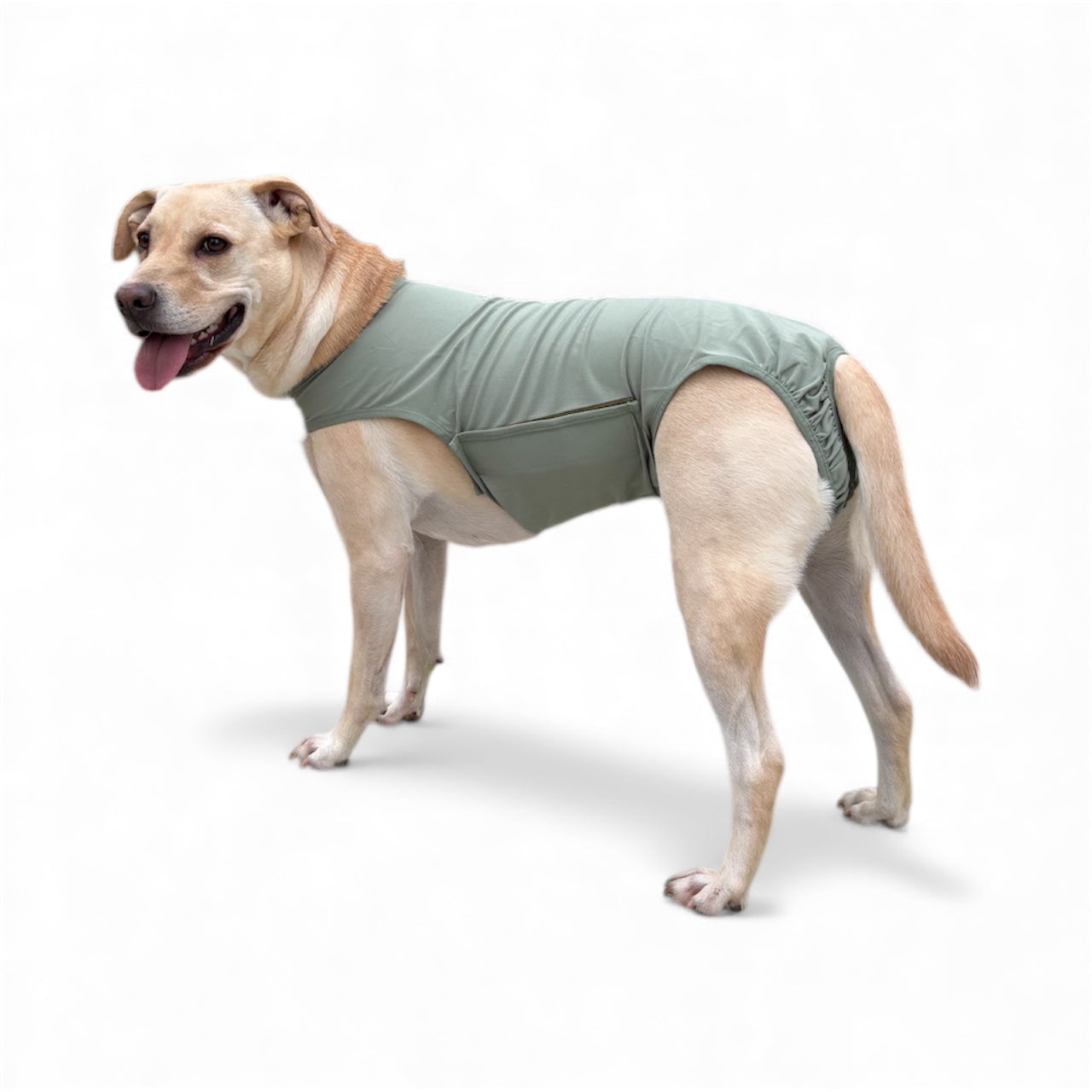 Designed by veterinary professionals as an alternative to the e-collar or “cone of shame”, our recovery suits are designed to alleviate stress by combining the comforting benefits of a compression suit plus durability of a medical grade fabric. The Onesie offers full abdominal coverage while allowing your pet to urinate and defecate without needing to remove the suit.